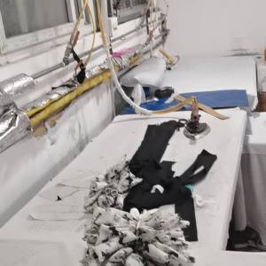 裤头车:1台,断布机:3台,钉扣:1台,平眼:1台,平车:25台,电烫炉:3台,直眼:1台,打边机:15台,电剪:5台,烫台:4台,冚车:5台,唛架机:1台,锅炉:3台,裁床:1台,五线:6台,四线:10台