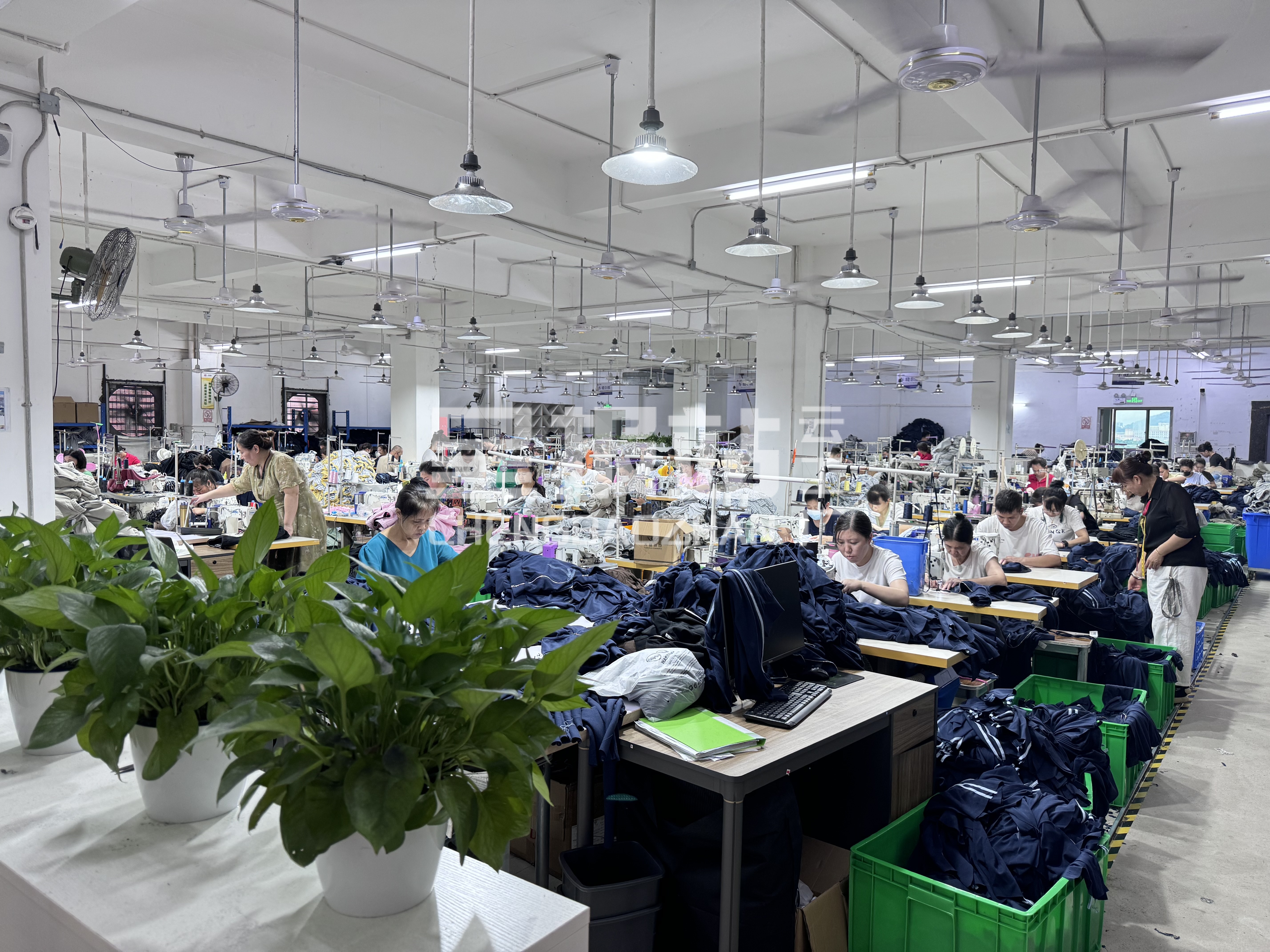 裤头车:6台,智能模板机:5台,自动拉布机:2台,电脑自动裁:1台,松布机:2台,定扣机:4台,挑脚机:1台,验布机:1台,断布机:4台,钉扣:4台,颗粒炉:1台,平车:85台,电烫炉:15台,电脑凤眼:1台,打边机:40台,双针车:4台,电剪:10台,烫台:15台,冚车:35台,唛架机:2台,锅炉:1台,裁床:4台,五线:2台,四线:40台