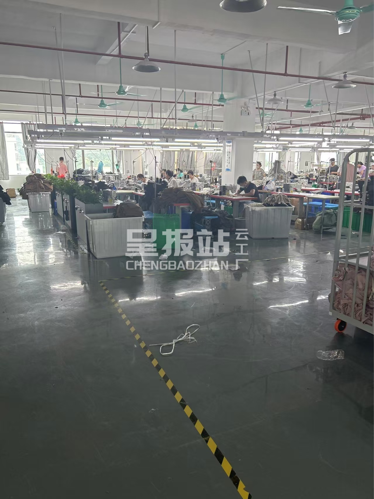 裤头车:3台,智能模板机:1台,挑脚机:1台,平车:12台,针扣机:1台,打边机:20台,双针车:2台,烫台:1台,冚车:6台,唛架机:1台,水空调:1台,五线:3台,四线:3台