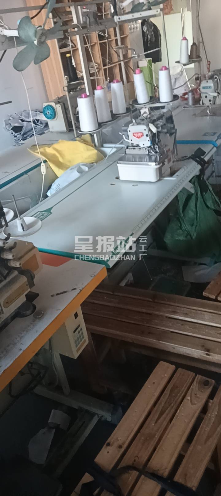 松布机:1台,剪线机:1台,断布机:1台,平车:12台,打边机:12台,电剪:2台,烫台:1台,冚车:2台,唛架机:1台,锅炉:1台,裁床:1台,五线:2台,四线:12台