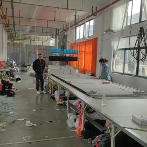 定扣机:1台,剪线机:1台,断布机:1台,钉扣:1台,自动打扣机:1台,平眼:1台,平车:40台,电烫炉:1台,直眼:1台,打边机:20台,双针车:2台,电剪:4台,烫台:4台,冚车:3台,唛架机:1台,水空调:6台,裁床:1台,五线:10台,四线:20台