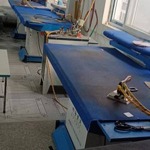 松布机:1台,定扣机:2台,验布机:1台,断布机:2台,钉扣:3台,自动打扣机:2台,平眼:3台,平车:40台,电烫炉:5台,直眼:1台,打边机:20台,双针车:5台,电剪:5台,烫台:5台,冚车:8台,唛架机:1台,锅炉:2台,裁床:2台,四线:20台