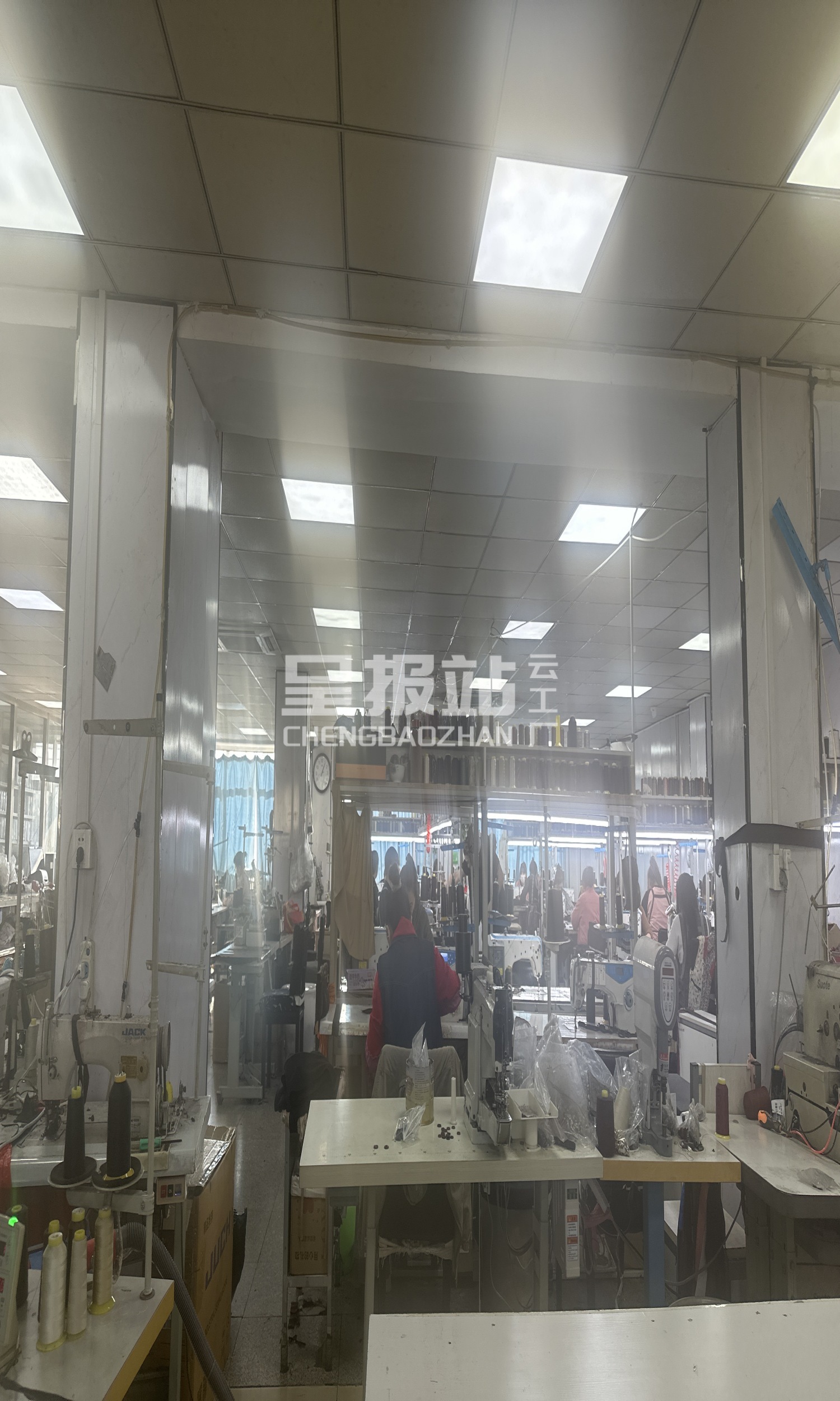 定扣机:1台,剪线机:1台,断布机:1台,钉扣:1台,颗粒炉:1台,平眼:1台,平车:20台,针扣机:1台,电脑凤眼:1台,双针车:2台,电剪:3台,烫台:5台,冚车:1台,锅炉:1台,五线:2台,四线:2台