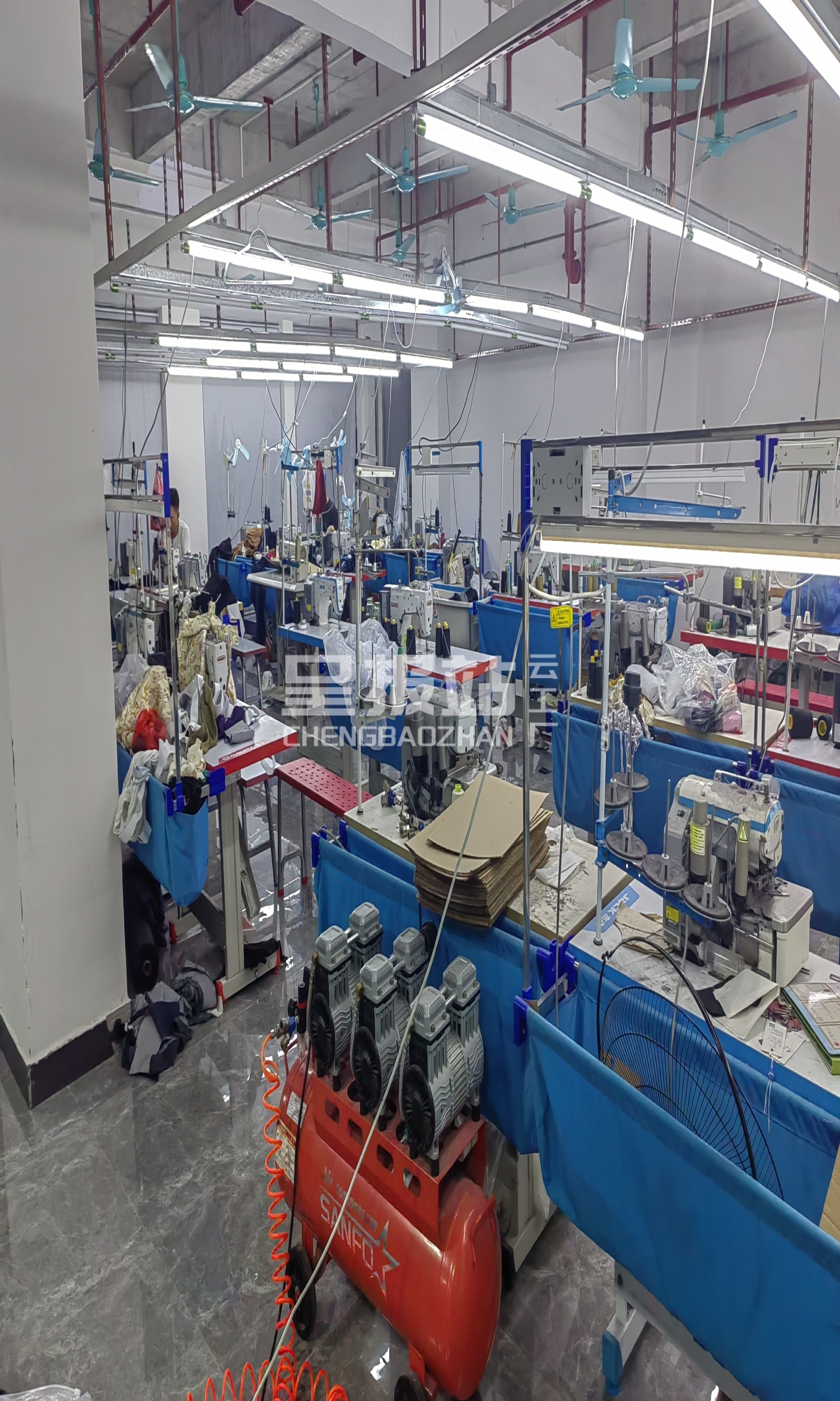 验布机:1台,平车:30台,打边机:8台,双针车:1台,电剪:2台,烫台:4台,冚车:1台,唛架机:1台,锅炉:2台,裁床:1台
