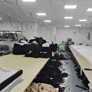 现有两个工厂,一个衣服,一个裤子,主要是做希音供货商加工,T恤,卫衣套装,棉T,牛奶丝,数码印花,八十位姐妹,日产五千件衣服