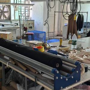 定扣机:2台,剪线机:2台,验布机:1台,断布机:1台,自动打扣机:2台,平眼:2台,平车:25台,针扣机:1台,电脑凤眼:1台,双针车:1台,烫台:2台,唛架机:1台,水空调:5台
