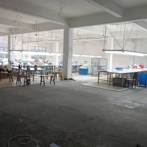 定扣机:1台,剪线机:1台,断布机:2台,钉扣:1台,平眼:1台,平车:20台,针扣机:1台,直眼:1台,双针车:6台,电剪:3台,烫台:2台,冚车:3台,唛架机:1台,裁床:1台,五线:6台,四线:20台