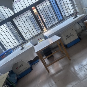 裤头车:1台,剪线机:2台,验布机:1台,断布机:2台,平车:20台,打边机:15台,双针车:2台,电剪:4台,烫台:2台,冚车:6台,唛架机:2台,裁床:4台,五线:3台,四线:15台