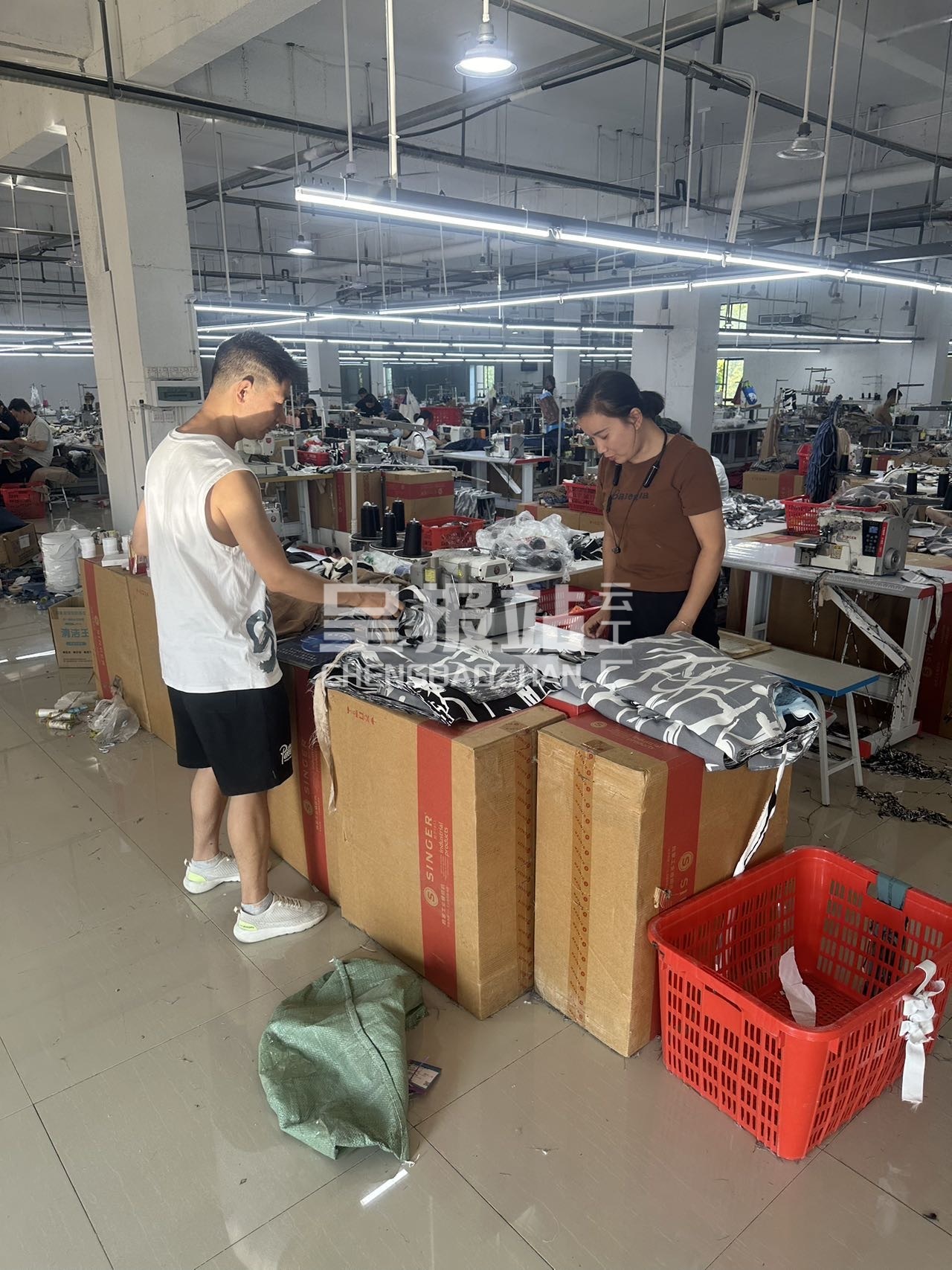 裤头车:1台,智能模板机:4台,啤机:6台,松布机:1台,断布机:6台,钉扣:3台,自动打扣机:3台,颗粒炉:1台,平眼:2台,平车:150台,电烫炉:2台,直眼:2台,打边机:60台,双针车:5台,电剪:8台,烫台:15台,冚车:4台,唛架机:2台,锅炉:2台,水空调:20台,裁床:4台,五线:60台,四线:60台