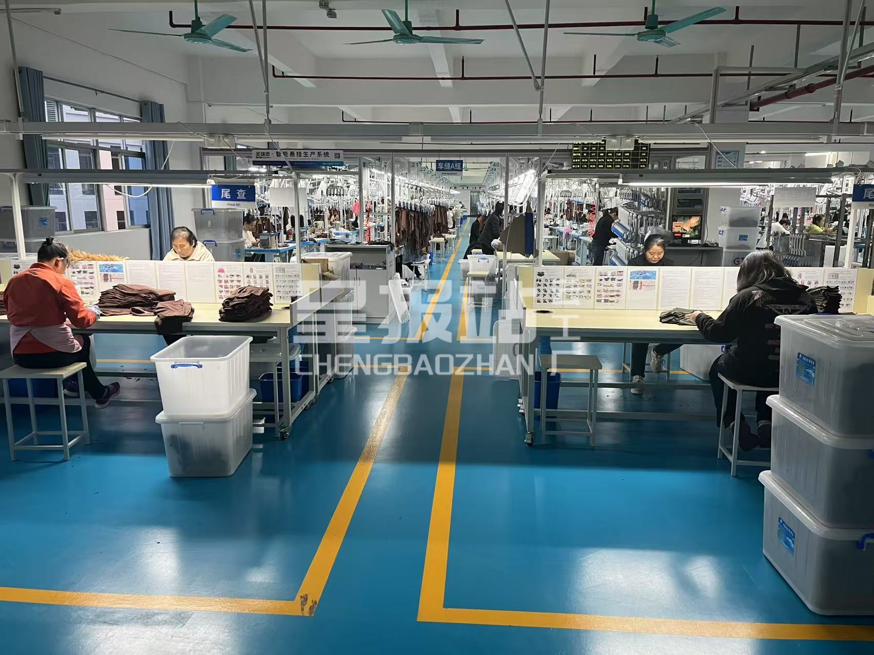 展厅,开发部,版房,裁床,车缝车间,尾部