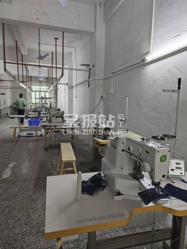 裤头车:1台,松布机:1台,断布机:1台,平车:9台,电脑凤眼:1台,电剪:1台,裁床:1台,五线:2台,四线:1台