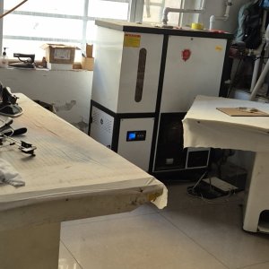 剪线机:1台,断布机:1台,自动打扣机:1台,颗粒炉:1台,平眼:1台,平车:15台,电烫炉:1台,直眼:1台,打边机:2台,双针车:1台,电剪:1台,烫台:4台,水空调:6台,五线:1台,四线:1台