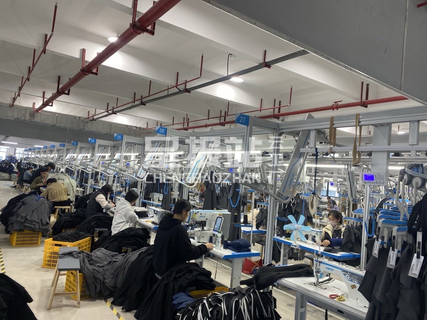 概括:厂房15000平方,车位500人,设有展厅、开发部、版房、裁床、车缝车间、尾部,人员设备齐全