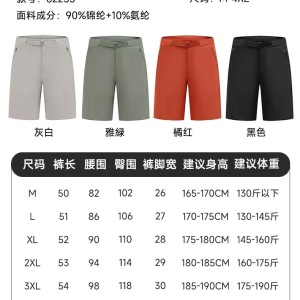 女装:休闲裤,T恤,短裤;男装:运动裤,休闲裤,T恤;户外运动:速干T恤,速干裤,运动卫裤,运动卫衣;