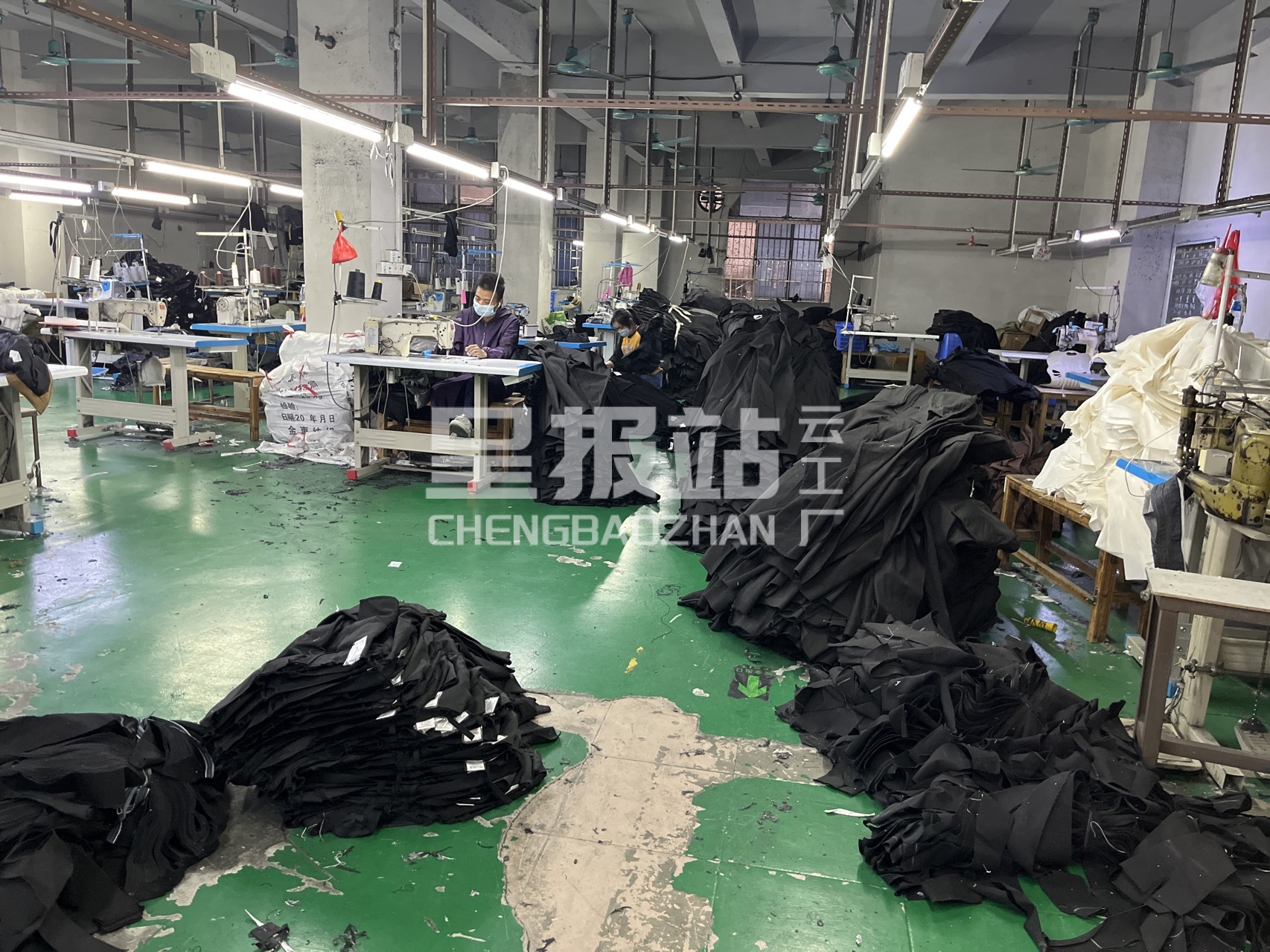 裤头车:6台,自动拉布机:2台,松布机:2台,定扣机:2台,剪线机:6台,验布机:2台,断布机:2台,自动打扣机:5台,平车:35台,电烫炉:2台,针扣机:10台,直眼:2台,电脑凤眼:2台,打边机:10台,双针车:10台,电剪:3台,烫台:10台,唛架机:1台,锅炉:1台,裁床:2台,五线:6台,四线:4台