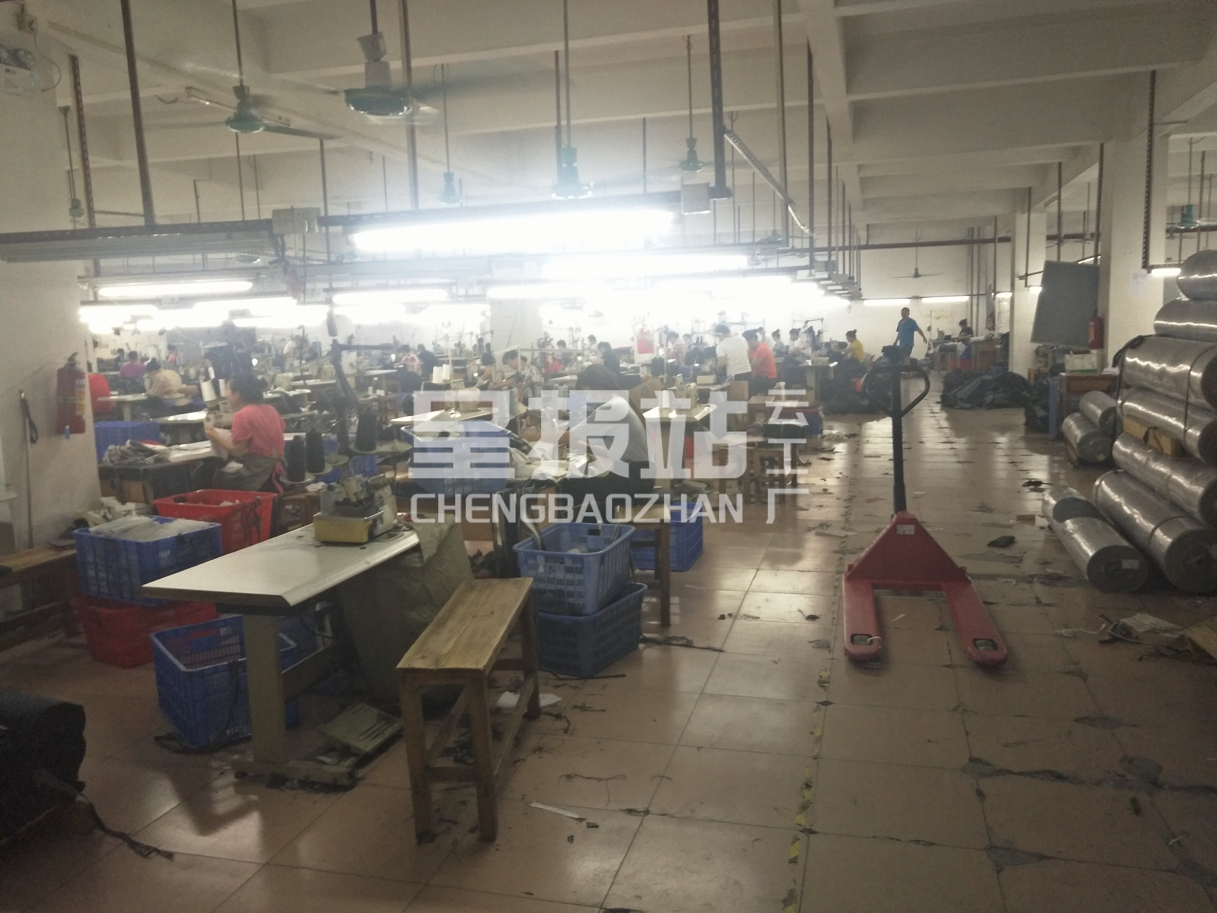裤头车:2台,自动拉布机:1台,松布机:1台,定扣机:3台,剪线机:3台,验布机:1台,断布机:1台,钉扣:2台,颗粒炉:1台,平车:58台,电脑凤眼:1台,打边机:5台,双针车:12台,电剪:2台