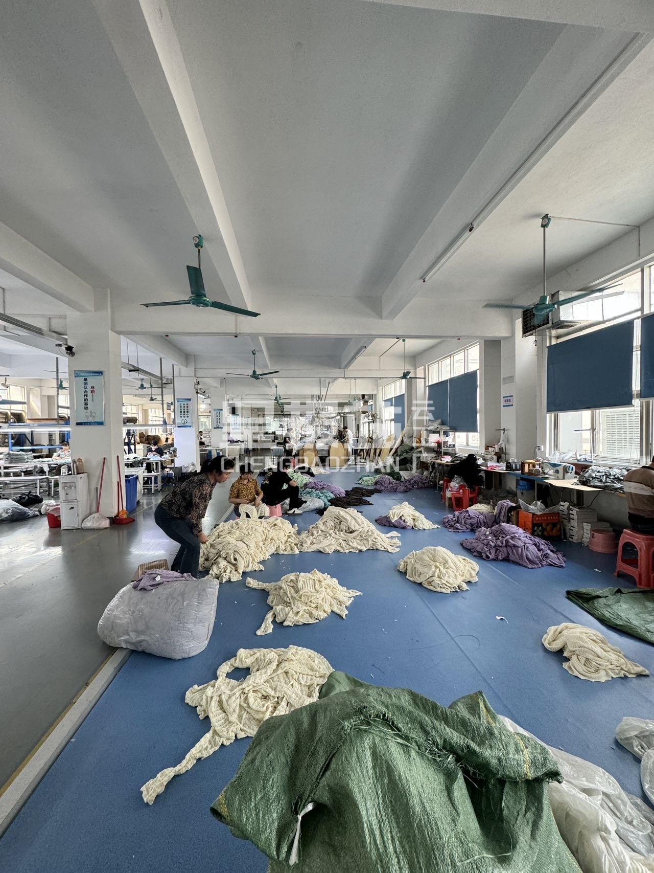 配有电脑机80台 缝盘50台 后整50人 一条龙生产线,保证您货品速度的同时品质也放在第一位。