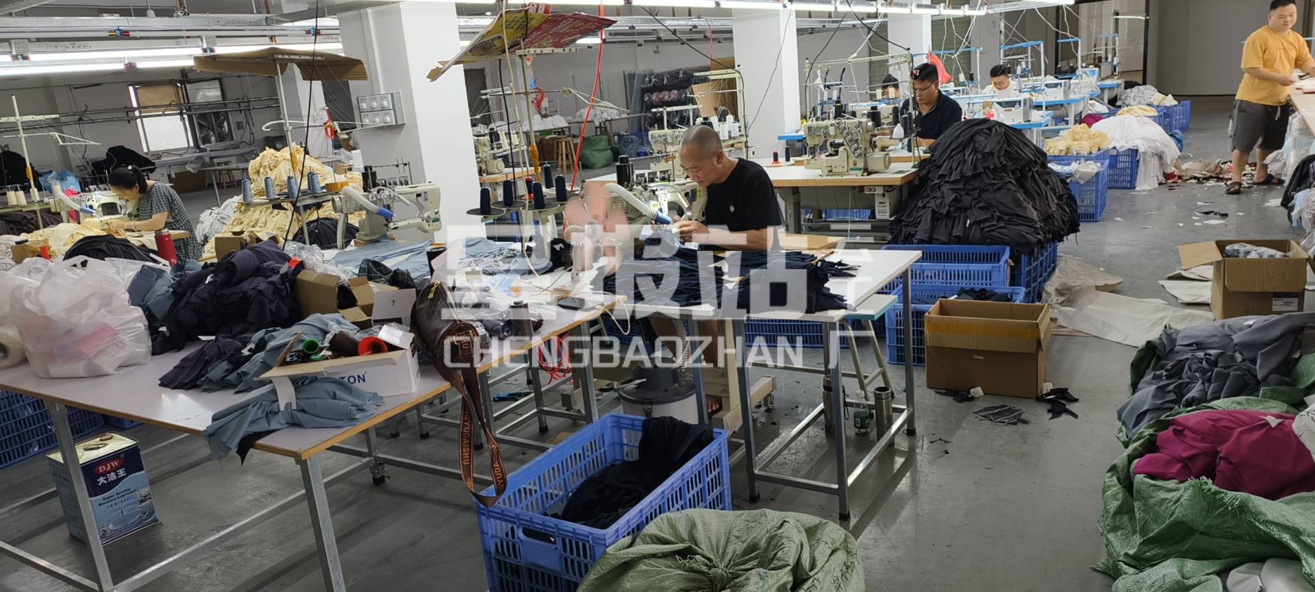 自动拉布机:1台,松布机:1台,验布机:1台,断布机:1台,颗粒炉:1台,平眼:1台,平车:8台,打边机:6台,电剪:2台,冚车:4台,唛架机:1台,锅炉:1台,水空调:6台,裁床:2台,四线:4台