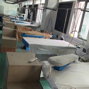 裤头车:2台,智能模板机:3台,自动拉布机:1台,电脑自动裁:1台,松布机:1台,定扣机:3台,挑脚机:2台,剪线机:6台,验布机:2台,断布机:2台,钉扣:6台,自动打扣机:3台,平眼:2台,平车:30台,电烫炉:5台,针扣机:2台,直眼:2台,电脑凤眼:2台,打边机:30台,双针车:2台,电剪:5台,烫台:8台,冚车:5台,唛架机:2台,锅炉:4台,水空调:25台,裁床:2台,五线:6台,四线:30台