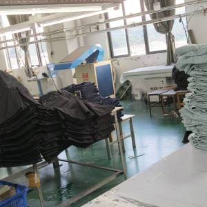 裤头车:1台,剪线机:4台,验布机:1台,断布机:2台,钉扣:4台,自动打扣机:1台,平眼:1台,平车:60台,电烫炉:2台,针扣机:6台,直眼:1台,电脑凤眼:1台,打边机:6台,双针车:6台,电剪:4台,烫台:4台,唛架机:2台,水空调:2台,五线:6台,四线:6台