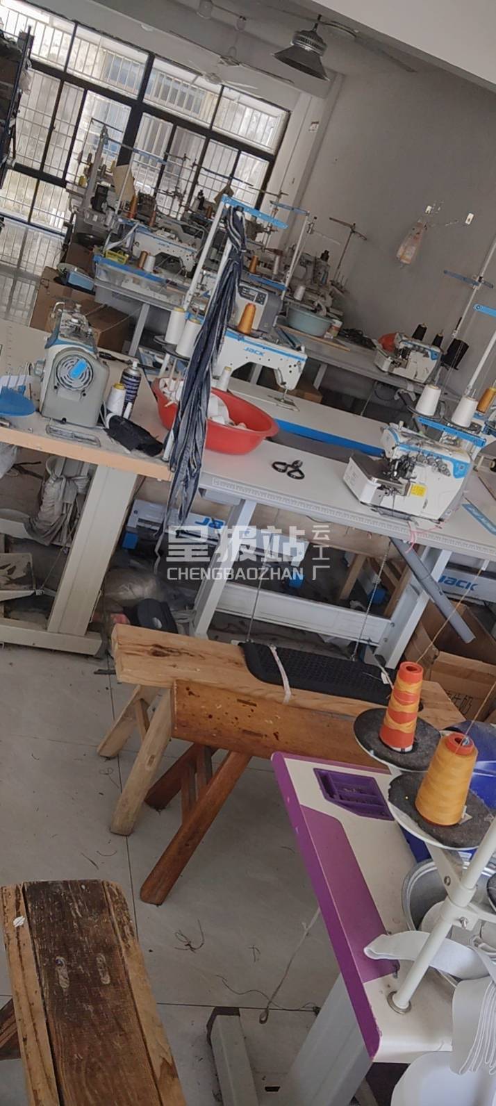 裤头车:2台,智能模板机:3台,自动拉布机:1台,电脑自动裁:1台,剪线机:6台,断布机:3台,钉扣:3台,平车:150台,电烫炉:18台,针扣机:3台,直眼:3台,电脑凤眼:3台,打边机:5台,双针车:5台,电剪:10台,烫台:5台,冚车:4台,唛架机:2台,锅炉:5台,水空调:5台,裁床:5台,五线:10台,四线:20台