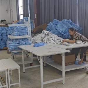 我们工厂是从设计到成品一条龙服务的,工厂面积3000平方,吊挂,自动裁床,车间中央空调,目前车位20人,管理5人,主要从事校服以及工作服订单制作,同时也承接一些外加工单。