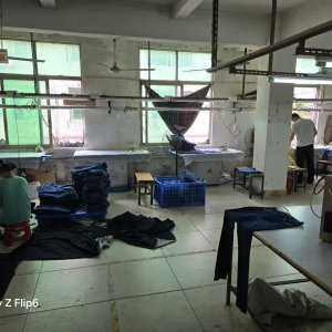 裤头车:3台,剪线机:10台,钉扣:2台,颗粒炉:2台,平车:50台,直眼:3台,电脑凤眼:3台,打边机:4台,双针车:4台,电剪:2台,烫台:4台,唛架机:2台,锅炉:2台,水空调:10台,裁床:3台,五线:3台,四线:3台