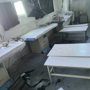 裤头车:3台,定扣机:1台,剪线机:6台,钉扣:6台,颗粒炉:1台,平眼:2台,平车:60台,电烫炉:1台,直眼:2台,电脑凤眼:2台,打边机:15台,双针车:15台,电剪:3台,烫台:6台,唛架机:1台,锅炉:1台,水空调:8台,裁床:2台,五线:15台,四线:6台