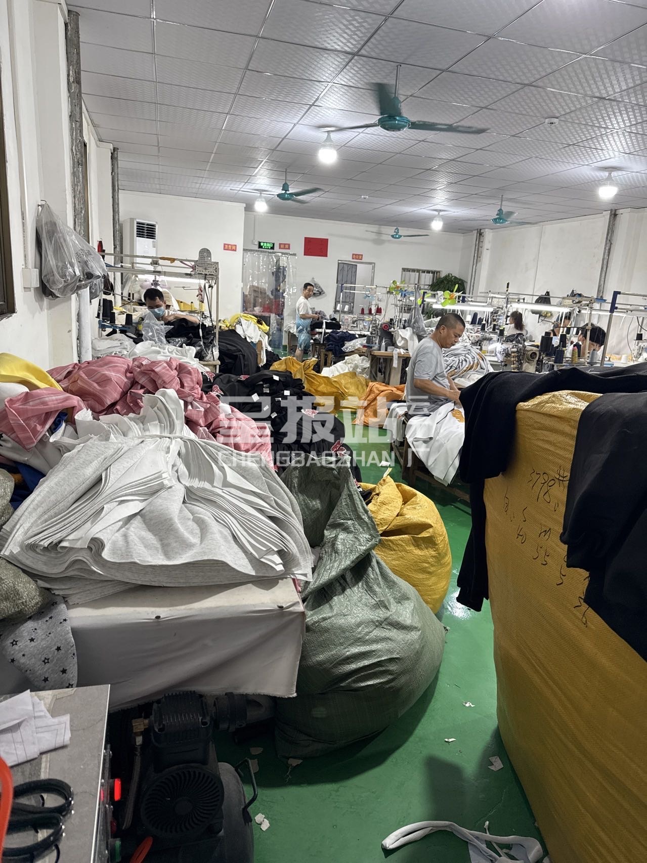 挑脚机:1台,剪线机:2台,断布机:1台,钉扣:1台,自动打扣机:1台,颗粒炉:1台,平车:22台,打边机:8台,双针车:1台,烫台:2台,冚车:4台,唛架机:1台,锅炉:1台,水空调:2台,裁床:1台,五线:2台,四线:8台