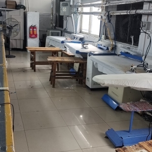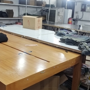 裤头车:4台,定扣机:2台,剪线机:6台,验布机:1台,钉扣:5台,自动打扣机:3台,颗粒炉:3台,平车:60台,电烫炉:3台,直眼:2台,电脑凤眼:3台,打边机:6台,双针车:6台,电剪:3台,烫台:4台,唛架机:2台,锅炉:1台,裁床:2台,五线:6台,四线:2台
