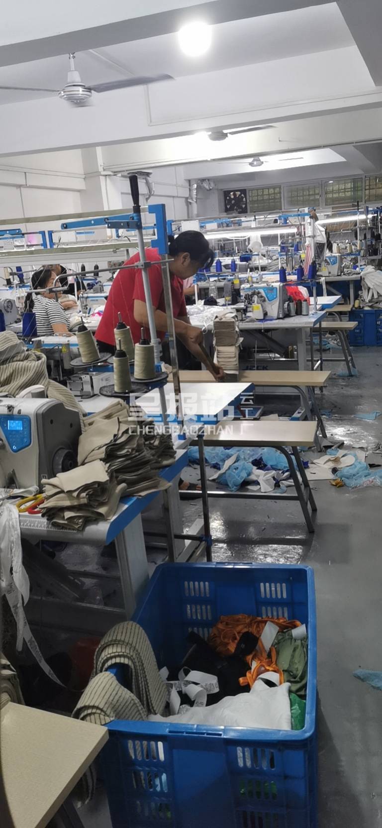 电脑自动裁:1台,剪线机:2台,平车:25台,电烫炉:4台,打边机:10台,冚车:2台,唛架机:1台,锅炉:2台,裁床:1台,五线:6台,四线:9台
