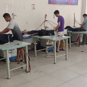 松布机:1台,定扣机:1台,断布机:3台,钉扣:1台,平车:25台,双针车:6台,五线:5台,四线:15台