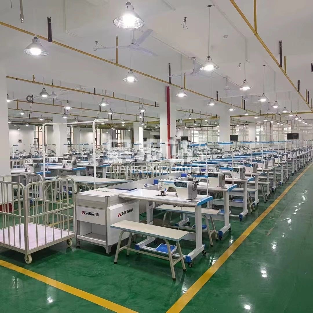 裤头车:4台,智能模板机:8台,自动拉布机:2台,电脑自动裁:1台,啤机:2台,松布机:1台,定扣机:12台,挑脚机:4台,剪线机:4台,验布机:1台,断布机:4台,钉扣:2台,自动打扣机:2台,颗粒炉:1台,平眼:2台,吊机:2台,平车:120台,电烫炉:2台,针扣机:2台,直眼:2台,电脑凤眼:1台,打边机:12台,双针车:6台,电剪:4台,烫台:6台,冚车:5台,唛架机:2台,锅炉:1台,水空调:12台,裁床:4台,五线:10台,四线:10台