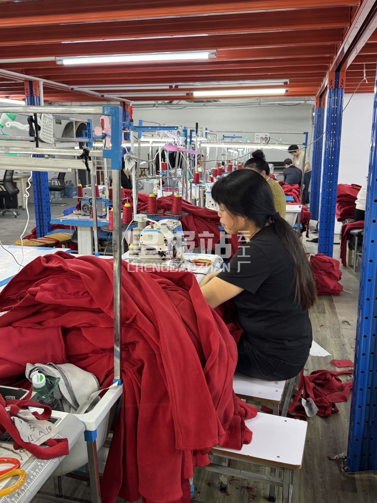 展厅,开发部,版房,裁床,车缝车间,尾部