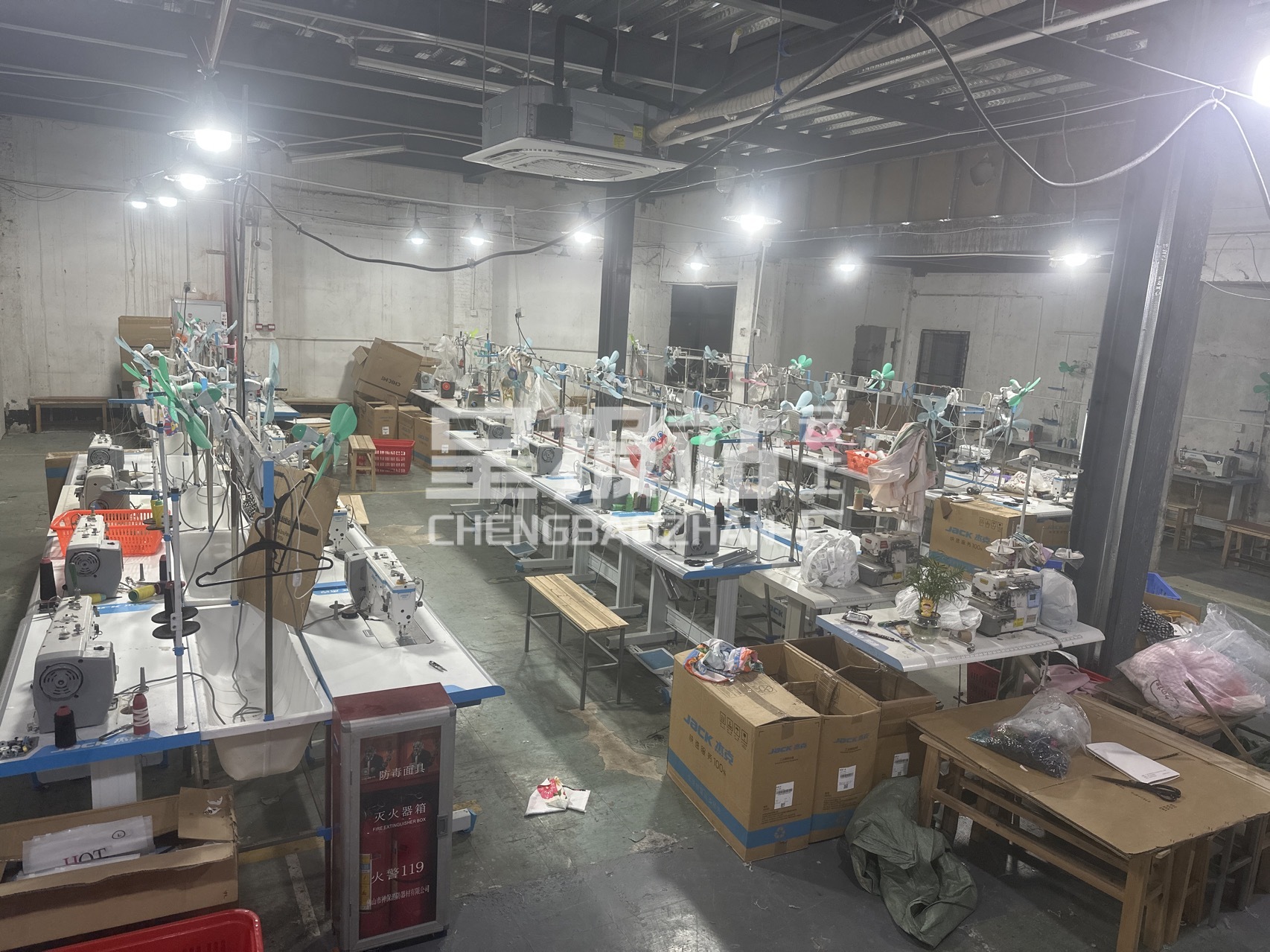 剪线机:3台,平车:45台,电烫炉:3台,打边机:15台