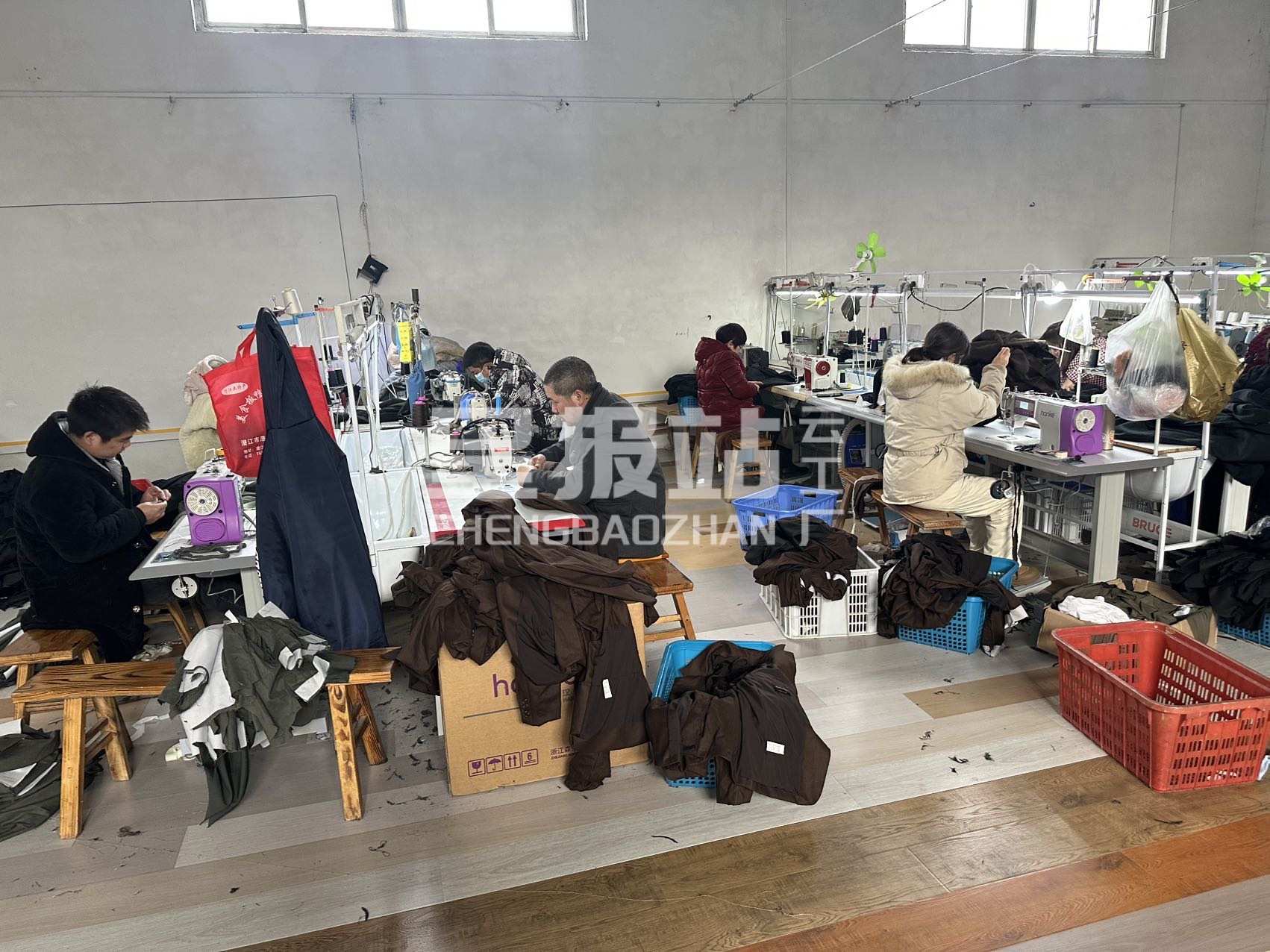 智能模板机:2台,自动拉布机:1台,啤机:1台,定扣机:1台,剪线机:1台,断布机:1台,钉扣:2台,平眼:1台,平车:25台,电烫炉:2台,直眼:1台,打边机:6台,双针车:2台,电剪:2台,烫台:3台,冚车:1台,唛架机:1台,锅炉:2台,裁床:1台,五线:6台,四线:6台